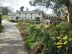 Tregidden Mill, referred to in 1888 as a corn mill,[5] was first recorded in 1250, and the current 19th century mill building is Grade II listed.[6] There was also a separate fulling mill in the hamlet recorded in 1506.[7]
