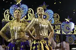 During parades, tricanas from the six traditional quarters wear dresses in their neighborhood colors.[1]
