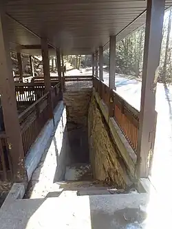 The history of Trough Creek State Park dates back to the pre-colonial Native American inhabitants who hunted and fished in the area prior to being forced out by colonial settlers who came to the area just after the American Revolutionary War. The first Europeans in the area cleared land for farming and built a gristmill to support the farms. Later settlers built iron furnaces clearing the old-growth forests to provide fuel for the furnaces. Edgar Allan Poe is rumored to have visited the area and found inspiration in the ravens that lived on the cliffs along Great Trough Creek just prior to writing his poem "The Raven".[4]