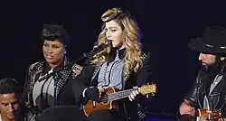 Madonna singing an acoustic version of "True Blue" with the ukulele on 2015―2016's Rebel Heart Tour.