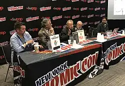 Panel dedicated to Trump at the 2016 New York Comic Con. From left to right: John Lind, Denis Kitchen, Arnold Roth, Al Jaffee and moderator Bill Kartapoulos.