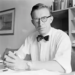 In 1955, de Lange was hired part-time as finance secretary in the Conservative Party by the party's general secretary, Leif Helberg.[3] John Lyng belonged to those who wanted de Lange as general secretary of the Conservative Party, while primarily C.J. Hambro and Alv Kjøs provided for the final break with Libertas around 1960. The beginning of this settlement was Liberta's launch of the program "Will to power", where it was proposed to give young, talented politicians positions in business, so they could get to know business next to his political work.[4][5] Libertas proposed concrete political programs and alternative state budgets, but was opposed by the Conservatives' central government, which stated that "the independence of the parties is an absolute prerequisite for a clear responsibility in political life." Kjøs believed that Libertas should simply be shut down.[5][6] Lars Roar Langslet and others in the circle around Minerva criticized market liberalism as such. Libertas was forced to become a pure information organization and refrain from playing in purely political matters, and the Conservatives could more easily cooperate with other bourgeois parties.[4]