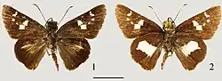 - ^ Jian-Qing Zhu, Hideyuki Chiba & Li-Wei Wu 2016. Tsukiyamaia, a new genus of the tribe Baorini (Lepidoptera, Hesperiidae, Hesperiinae). ZooKeys 555: 37-55. doi:10.3897/zookeys.555.6144.