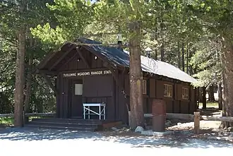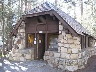 The Tuolumne Meadows Ranger Station and Comfort Stations are examples of National Park Service Rustic design in Yosemite National Park. They are within the Tuolumne Meadows Historic District at Tuolumne Meadows. The ranger station was built in 1924 using peeled log construction.[2] The ranger station doubled as the park entrance station for the Tioga Road. Its function was partly superseded by a newer structure in 1936, using larger quantities of stonework.