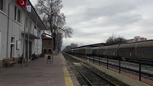 Turgutlu railway station (Turkish: Turgutlu garı) is a railway station in Turgutlu, Turkey and is the only station within the city. TCDD Taşımacılık operates a daily inter-city train from İzmir to Konya and a daily regional train to İzmir to Uşak.[1]