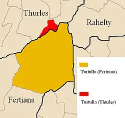 1. ^ Thurles Civil Parish. However, the map on this web page is a little inaccurate, because it shows the wrong townland of Turtulla as belonging to the parish - there are actually two neighbouring townlands of this name, this one in Thurles civil parish and a neighbouring one which belongs to Fertiana civil parish.