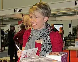 Finnish writer Tuuve Aro signing her books at Tampere Book Fair 2012.