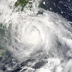 Typhoon Dujuan, known in the Philippines as Typhoon Onyok,[1] was the strongest tropical cyclone to strike the Pearl River delta since Typhoon Hope in 1979. The 13th storm and 7th typhoon of the 2003 Pacific typhoon season, Dujuan developed on August 27 to the east of Taiwan. It initially moved to the northwest, slowly intensifying into a tropical storm while drawing moisture and rainfall over the Philippines. On the island of Luzon, one person was killed and areas were flooded. Dujuan quickly intensified after turning and moving quicker to the west-northwest, developing an eye. It reached peak winds of 150 km/h (93 mph) on September 1, and shortly thereafter passed just south of Taiwan. There, Dujuan left 590,000 people without power, killed three, and caused NT$200 million (NWD, $115 million USD) in crop damage.[nb 1] While moving through the South China Sea, the typhoon developed concentric eyewalls. Dujuan weakened to severe tropical storm status before making landfall on September 2 in southern China, just east of Hong Kong near Shenzhen, Guangdong. The storm dissipated the next day after causing 40 deaths and ¥2.3 billion (CNY, US$277 million) in damage. Most of the deaths were in Shenzhen where the storm moved ashore, and the city experienced a near-total power outage.