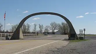 The United States Highway 61 Arch, commonly known as the U.S. Highway 61 Arch or the U.S. Route 61 Arch, is an arch which crosses U.S. Route 61 (US 61) at the Arkansas–Missouri state line, between Blytheville, Arkansas and Steele, Missouri. The concrete horseshoe arch reads "Entering Arkansas" on one side and "Entering Missouri" on the other. The Mississippi County, Arkansas Road Improvement District built the arch in 1924 after paving the highway; it erected a similar arch over the highway at the Crittenden County line, but the other arch was removed in the 1950s. At the time, the highway was called the North–South Road, and it was already a major route between St. Louis, Missouri and Memphis, Tennessee; the next year, it was designated as part of US 61. The arch is the only archway over a U.S. Highway in Arkansas.[2]