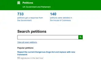 ![]() Screenshot of the UK Parliament petitions website on 1 November 2022 | |