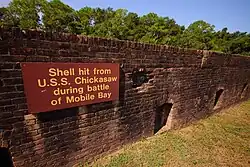 USS Chickasaw was an ironclad Milwaukee-class river monitor built for the United States Navy during the American Civil War. The ship participated in the Battle of Mobile Bay in August 1864, during which she was lightly damaged, and the bombardments of Forts Gaines and Morgan as Union troops besieged the fortifications defending the bay. In March–April 1865, Chickasaw again supported Union forces during the Mobile Campaign as they attacked Confederate fortifications defending the city of Mobile, Alabama.