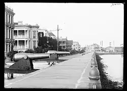 The Keokuk guns served the Confederacy for the remainder of the war. One was destroyed, probably during the evacuation of Charleston in 1865. The other gun tube can still be seen on the Charleston waterfront at White Point Garden, mounted on an incorrect iron fortress carriage.[7][8] In the image, the Keokuk gun is in the background.
