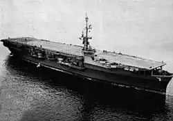 USS Kula Gulf was a Commencement Bay-class escort carrier of the United States Navy. She was originally named Vermillion Bay, but was renamed during construction. The Commencement Bay class were built during World War II, and were an improvement over the earlier Sangamon class, which were converted from oil tankers. They were capable of carrying an air group of 33 planes and were armed with an anti-aircraft battery of 5 in (127 mm), 40 mm (1.6 in), and 20 mm (0.8 in) guns. The ships were capable of a top speed of 19 knots (35 km/h; 22 mph), and due to their origin as tankers, had extensive fuel storage.