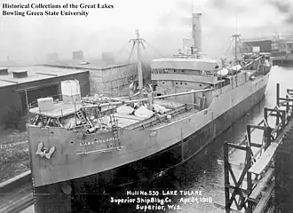 SS Lake Tulare at the Superior Shipbuilding Company yard in Superior, Wisconsin, on 24 April 1918.
