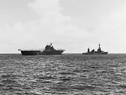 Northampton attempting to tow Hornet during the battle of the Santa Cruz Islands on 26 October 1942