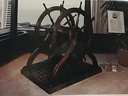 The ship's helm was removed during decommissioning and was on display in the headquarter's reception area in 1995.