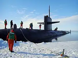 In 2008, she completed another deployment to the Western Pacific Ocean, only this time taking a northern route, successfully transiting under the arctic ice cap. On 1 July 2008 she surfaced at the North Pole to commemorate the fiftieth anniversary of the historic feat of the USS Nautilus (SSN-571) in 1958.