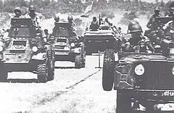 Uganda Army OT-64 SKOT APCs, Ferret armoured cars, and jeeps in the late 1960s