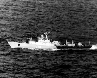 The 1124P project corvette (NATO reporting name: Grisha I class, Soviet classification: MPK-147 class Russian: МПК-147) were intended to counter enemy submarines in nearby area of naval bases, ports and scattered berths, on the deployment of naval forces to carry out anti-submarine surveillance and protection of ships and vessels at sea.[1]