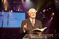 In October 1991 Parzany became involved in the ProChrist evangelical meetings, and he succeeded Billy Graham as the main speaker at these events, held every three years since the German reunification.[4] From November 2002 until November 2005 Parzany also led the German section of the Lausanne Covenant.[3]
