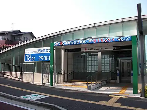 Umebayashi Station (梅林駅) is a subway station on the Fukuoka City Subway Nanakuma Line in Jōnan-ku, Fukuoka in Japan. Its station symbol is a picture of a plum blossom in pink.