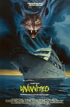 Uninvited is a 1987[2][3] American science-fiction horror film written, produced and directed by Greydon Clark and starring George Kennedy, Alex Cord, Clu Gulager, Toni Hudson and Eric Larson.[4] The film primarily takes place aboard a luxury yacht owned by a criminal multimillionaire and bound for the Cayman Islands, whose passengers and crew are terrorized by a mutant cat.
