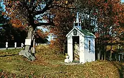 The Union Church was constructed in 1958 by Reverend Louis W. West, a retired Baptist pastor from Boston, Massachusetts. The church could hold three occupants: a pastor and two parishioners. It is said that West performed ten marriages and one baptism in the church.[1] According to the Guinness Book of World Records, the church's floor area measured 31 square feet (7 ft x 4.5 ft).[2] Sources say that the steeple had a golf ball placed atop it and that the church itself was never locked.[3]