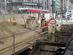 Station excavation was completed by July 2017, and concrete was poured for the station floor.[6]