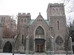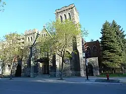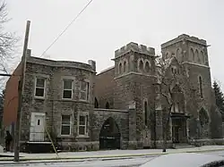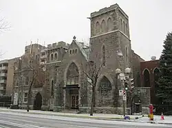 The church was opened in Welsh Hall on September 1, 1907, by Samuel Brown. Participating were 26 people who made up the first membership roll. The number reflected the country's decennial census, which revealed that there were only 401 people of African descent living in the entire province of Quebec. That was widely regarded as an underestimate, with 1,000 being closer to the real figure.[4] In 1910, Union Church outgrew the Canadian Pacific Railway's Welsh Dance Hall and moved to Olivet Baptist Church on the corner of de la Montagne and de la Gauchetiere (formerly Mountain and Osborne).[1] Union Church moved again in 1916 to the West End French Methodist Church, built in 1897, and located on 3007 and 3021 Delisle Street.[1]