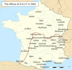 The General Union of French Israelites (French: Union générale des israélites de France, UGIF) was a body created by the antisemitic French politician Xavier Vallat under the Vichy regime after the Fall of France in World War II. UGIF was created by decree on 29 November 1941 following a German request, for the express purpose of enabling the discovery and classification of Jews in France and isolating them both morally and materially from the rest of the French population.[1] It operated in two zones: the northern zone, chaired by André Baur, and the southern zone, under the chairmanship of Raymond-Raoul Lambert.[2]