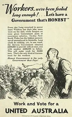 Anti-Lang advertisement used by the UAP at the 1932 New South Wales state election