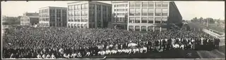 Since its founding, the United Shoe Machinery Company was embroiled in legal disputes and controversial business practices.[3][4][5][6][7] By 1916, the factory sent out 24,000 machines per year. Unusually for its time, the company leased out its shoe manufacturing equipment, rather than selling it. A boot factory could use 50 different machines to stay competitive. The Bewerly(sic) site had food halls seating 700 employees, break rooms, leisure facilities, apprenticeship and a hospital. The company designed, built and tested the machines, and then disassembled them and sent them to customer factories.[8]