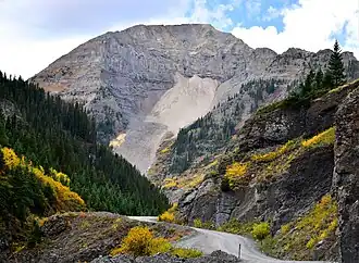 ![]() Northeast aspect, from Camp Bird Road | |