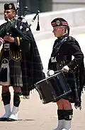 The United States Naval Academy Pipes and Drums is a highland musical midshipman unit of the United States Naval Academy (USNA). Currently, the 42-member military pipe band is the only active duty unit of its kind in any service of the Department of the Navy (United States Marine Corps included).[1] The band group provides musical support to the academy's Brigade of Midshipmen as well as the larger city of Annapolis, Maryland. It is one of several service academies and senior military colleges to maintain bagpipe bands, alongside the West Point Pipes and Drums, the Pipes and Drums of The Citadel and the Virginia Military Institute Pipes and Drums. The USNA Pipe Band is one of the more recent of these types of bands, being established in 1996 with funding being provided by members of the Annapolis class of 1961. It was officially approved as a Brigade Support Activity (BSA) three years later.[2][3]
