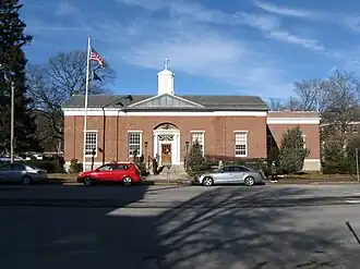 The US Post Office-Lexington Main is a historic post office at 1661 Massachusetts Avenue in Lexington, Massachusetts. The single-story brick Georgian Revival building was built in 1937 as part of a Depression era works program. The building has fairly modest styling: it has a belfry and cupola, and its entry is flanked by fluted engaged columns, and topped by a simple entablature, and an eagle set in a carved recess. The interior has marble terrazzo flooring, and marble wainscoting below otherwise plaster walls.[2]