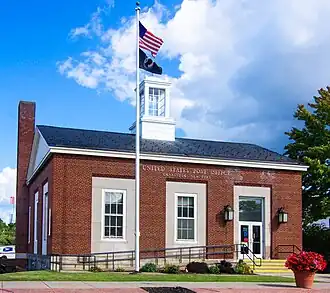 US Post Office-Canastota is a historic post office building located at Canastota in Madison County, New York, United States. It is within the boundaries of the South Peterboro Street Commercial Historic District. It was designed and built in 1940, and is one of a number of post offices in New York State designed by the Office of the Supervising Architect of the Treasury Department, Louis A. Simon. It is a one-story, three bay steel frame building with facades of red brick laid in common bond in the Colonial Revival style. It features a gable roof crowned by a square, wooden cupola. The interior features a 1942 mural by Alison Mason Kingsbury titled The Onion Fields.[2]