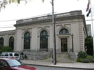 US Post Office-Ithaca is a historic post office building located at Ithaca in Tompkins County, New York. It was designed and built in 1909 and is one of a number of post offices in New York State designed by the Office of the Supervising Architect of the Treasury Department, James Knox Taylor.