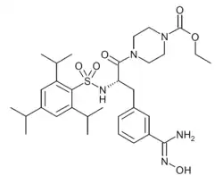 • CCOC(=O)N1CCN(CC1)C(=O)[C@H](CC2=CC(=CC=C2)/C(=N\O)/N)NS(=O)(=O)C3=C(C=C(C=C3C(C)C)C(C)C)C(C)C