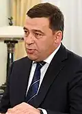 The district is governed by the Presidential Envoy, and individual envoys are assigned by the President of Russia to all the Oblasts of the district. Pyotr Latyshev was envoy to the Urals Federal District until his death on 2 December 2008. Nikolay Vinnichenko succeeded him on this post on 8 December 2008.[9] On 6 September 2011 Vinnichenko was appointed the envoy to the Northwestern Federal District, and Yevgeny Kuyvashev became the Presidential Envoy in the Ural Federal District.[10] On 18 May 2012 Vladimir Putin offered the tenure to Igor Kholmanskikh, an engineer without any previous political experience, and Kholmanskikh accepted the offer.[11] On 26 June 2018, Kholmanskikh was replaced by Nikolay Tsukanov.[12]