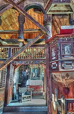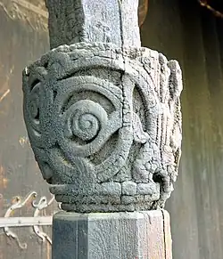 This design was immensely popular at the time and served as inspiration for later stave churches.[2] It provides a link between Christian architecture and the architecture and art forms of the Viking Age with typical animal-ornamentation, the so-called "Urnes style" of animal-art.