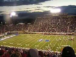 Football game being played at USU's Romney Stadium (now Merlin Olsen Field at Maverik Stadium)