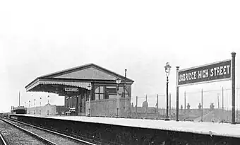 Uxbridge High Street railway station in Uxbridge, England, was on what is now Oxford Road near its junction with Sanderson Road. It was the southern terminus and only station on the Great Western Railway (GWR) branch line from the GWR/GCR joint line, which is now the Chiltern Main Line.