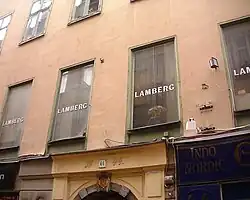- ^ a b c d e Glase, Béatrice; Gösta Glase (1988). "Västra Stadsholmen". Gamla stan med Slottet och Riddarholmen (in Swedish) (3rd ed.). Stockholm: Bokförlaget Trevi. pp. 69–70. ISBN 91-7160-823-0.
