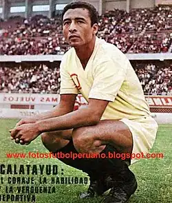José Eusebio Víctor Calatayud Figueroa[1] (born 16 December 1941) is a Peruvian retired footballer. Nicknamed "Puñalada" and "Calato", he was known for playing for Universitario de Deportes as a forward throughout the 1960s and early 1970s, being a part of the squad to win the 1971 Torneo Descentralizado and play in the 1972 Copa Libertadores finals.