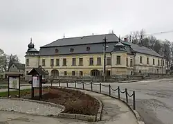 The castle was originally a fortress, rebuilt into a Baroque aristocratic residence in 1723–1729. In 1904–1907, it was rebuilt into its present Neo-Baroque form. Today it houses the municipal office.[3][7]