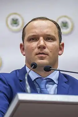 - ^ Kļavenieks, Mārtiņš. "Divu pretendentu duelī ievēlēs Latvijas Futbola federācijas prezidentu". LSM.lv. Latvijas Radio. Retrieved 21 December 2023.