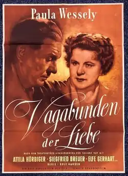 Vagabonds (German: Vagabunden) is a 1949 Austrian drama film directed by Rolf Hansen and starring Paula Wessely, Attila Hörbiger and Adrienne Gessner. The film's premiere was attended by the President Karl Renner and members of the government.[1] It was shot at Salzburg Studios and on location in the city. The film's sets were designed by the art director Julius von Borsody. It was released in West Germany on 3 March 1950 by Bavaria Film. It is also known by the alternative title Vagabunden der Liebe.