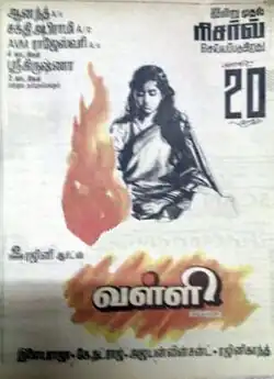 Valli is a 1993 Indian Tamil-language drama film directed by K. Natraj, written and produced by Rajinikanth, who also stars in extended guest role. It stars Priya Raman and Hariraj as the main leads and newcomer Sanjay as the main antagonist. The film's music was scored by Ilayaraja. Rajinikanth scripted the film, wrote the dialogues and appeared in an extended guest role.