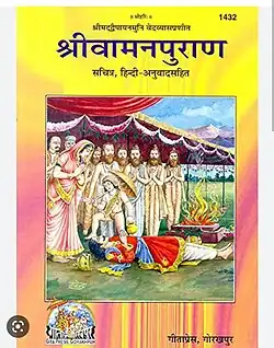 The extant manuscripts of Vamana Purana exist in various versions, likely very different from the original, and show signs of revision over time and regions.[7][8] It has been published by All India Kashiraj Trust in two rounds.[9] The first round had 95 chapters, while the critical edition (edited by Anand Swarup Gupta, and published by the All-India Kashiraj Trust, Varanasi) published in the second round has 69 chapters plus an attached Saro-mahatmya with 28 chapters dedicated to temples and sacred sites in and around modern Haryana.[9][10] Both these versions lack the Brhad-vamana with four samhitas, which is mentioned in the text, but is believed to have been lost to history.[9]
