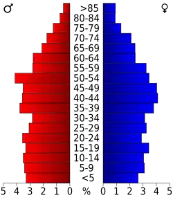 In the county, the population was spread out, with 23.2% up to the age of 19, 8.8% from 20 to 29, 12.4% from 30 to 39, 13.4% from 40 to 49, 16.8% from 50 to 59, 14.7% from 60 to 69, and 10.7% who were 70 years of age or older. The median age was 44.5 years. Women make up 50.2% of the population.